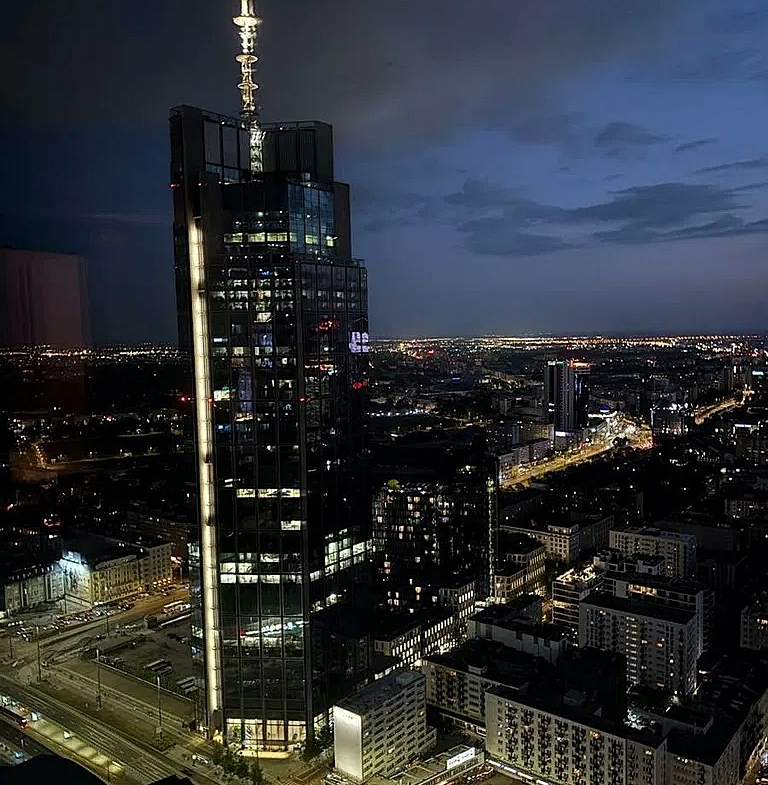 Złota 44 to 192-metrowy wieżowiec mieszczący niemal 300 unikatowych apartamentów. Projekt autorstwa światowej sławy architekta Daniela Libeskinda łączy nowoczesność z ponadczasową elegancją. Fasada budynku została wykonana ręcznie, a zastosowane technologie gwarantują wysoki poziom energooszczędności i redukcję hałasu.